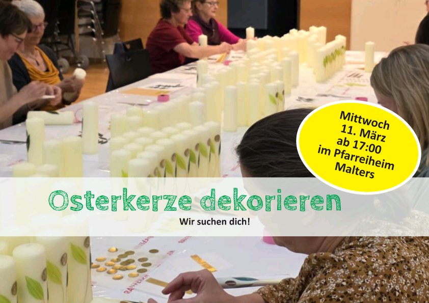 Fühl dich eingeladen, verbunden und bestärkt: Die Katholische Kirche Malters-Schwarzenberg umfasst die Pfarreien St. Martin Malters und St. Wendelin Schwarzenberg. Mit rund 6’300 Gläubigen, vielen freiwillig Engagierten und fünf Kirchen und Kapellen sind wir Teil eines lebendigen Dorflebens. Unsere Gottesdienste und Angebote schaffen Räume für Begegnung, Glauben und Gemeinschaft.