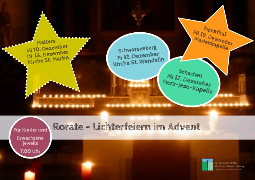 Samstag, 6. Dezember, 19.00 Uhr Kirche St. Martin, MaltersGestaltung: Jungwacht und Blauring MaltersSpirituelle Impulse: Markus Kuhn Es erwartet dich ein Lichterweg mit