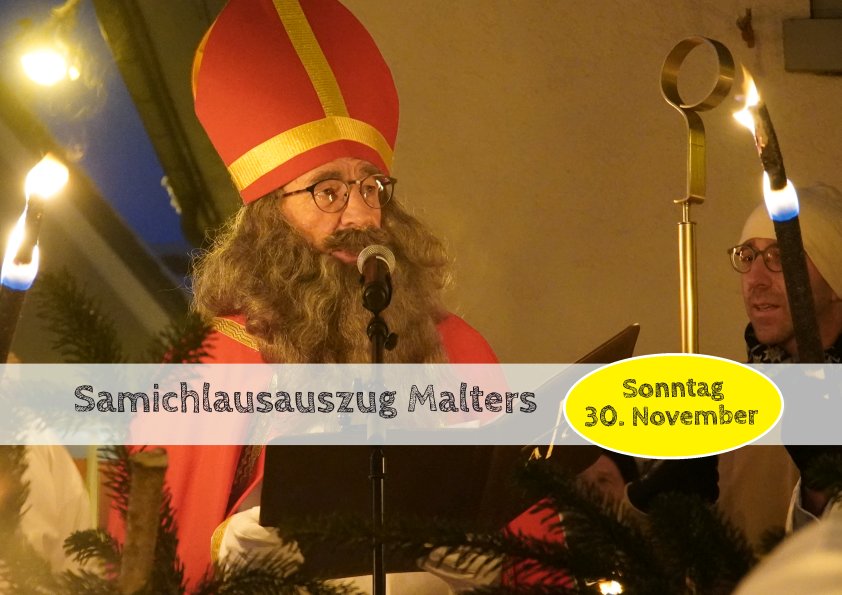 Sonntag, 30. November 17.00 Uhr, Kirchentreppe St. Martin Malters Der Samichlaus freut sich jetzt schon, am Samichlaus-Auszug, wieder viele Kinder und ihre