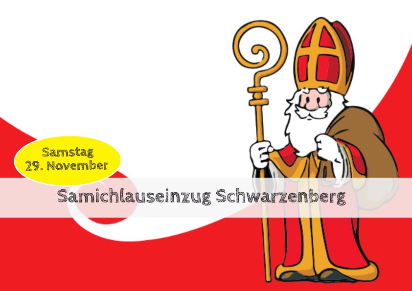 Samstag, 29. November Start ab Matt 17.30 UhrFamilienfeier mit dem Samichlaus in der Kirche St. Wendelin 18.00 Uhr Der Samichchlaus von Schwarzenberg